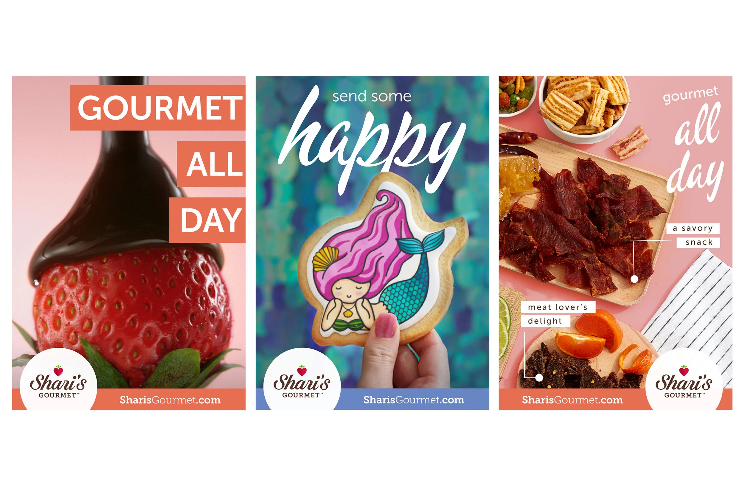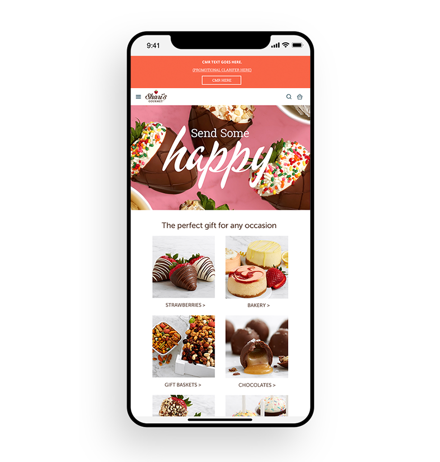 Give Happy. Get Happy. campaign for Shari’s Gourmet is all about the happy. Whether it’s the joy of receiving a gift that’s just so you, or the satisfaction of finding that one special surprise that’s just right... This campaign focussed on communication that connects with new customers while showing current customers that Shari’s Gourmet is an exciting expansion of the quality products they’ve come to expect from Shari’s Berries.